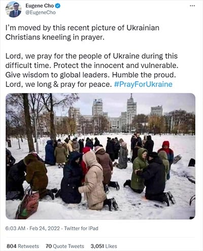 A photo allegedly shows Christians praying in the snow in Ukraine amid (or immediately prior to) the Russian invasion.