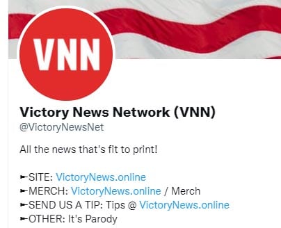 However the graphic, as per the banner in the bottom corner, comes from a Twitter channel called Victory News Network (VNN). By it’s own admission, this is a satirical parody account that does not provide genuine news.