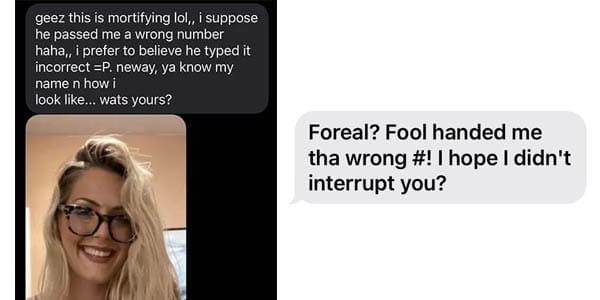 1. Girl texts flirty SMS message but it gets sent to wrong phone number.