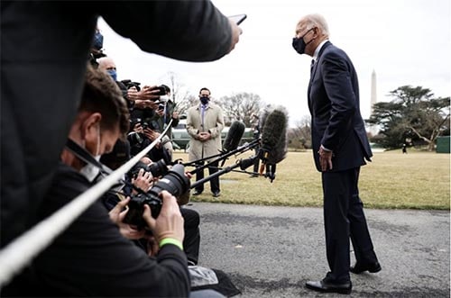 Did Biden use a green screen during exchange with reporters? Fact Check