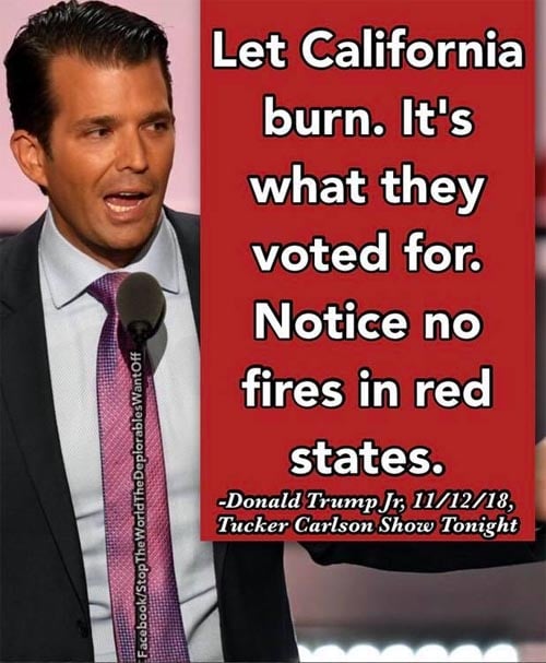A meme is spreading online that claims Donald Trump Jr., son of President Donald Trump, said to let California burn because the state voted Democrat.