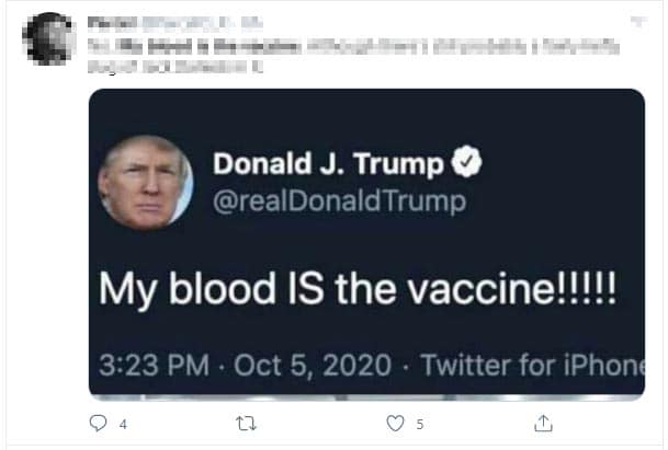 Did Trump tweet “My blood IS the vaccine”? Fact Check