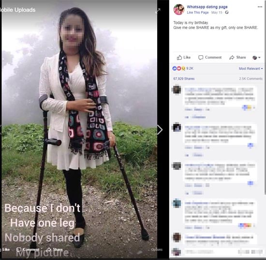The latest “in” type of like-farming is the “it’s my birthday but I’m disabled and nobody will share my photo” variant, as a number of viral posts have clearly demonstrated.