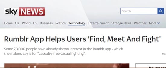 A website purporting to offer an app that allows people to arrange fights with each other has managed to fool many tech blogs and mainstream media.