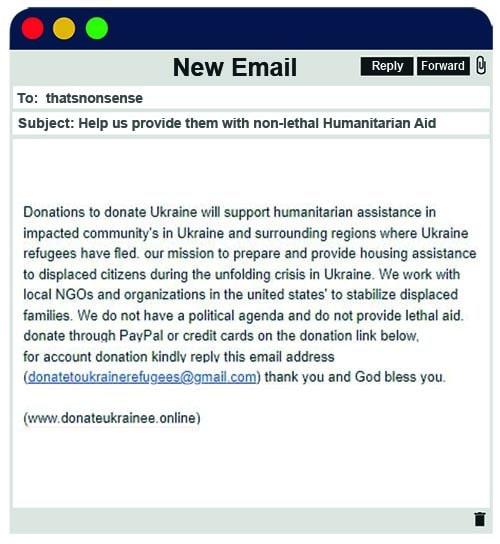 Perhaps the most common method employed by scammers seeking to take advantage of the Ukraine conflict is also one of the oldest scams in the crooks playbook. Email phishing scams.