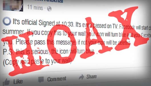 The rumour claims that your Facebook icon will turn blue which means Facebook will be free and you can avoid the charge. A version of the rumour can be seen below –