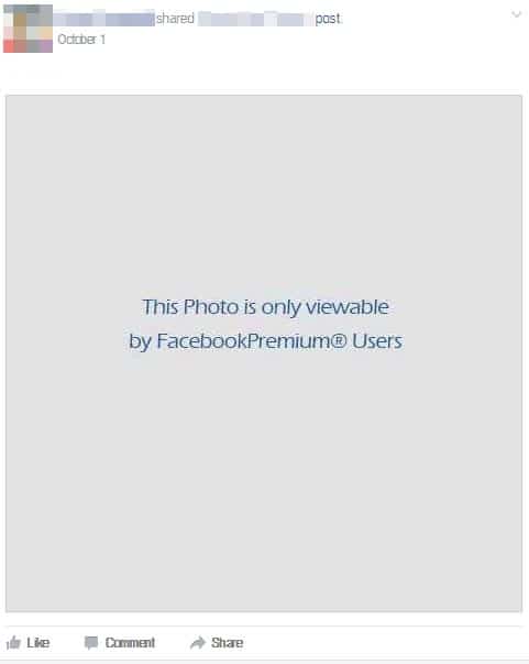 It was in response to a flurry of photos and comments appearing on Facebook that read “This photo is only viewable by FacebookPremium viewers”. See below.