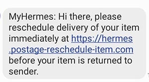 None more so than the “missed delivery” SMS scam where a recipient would receive a text message claiming to be from a well-known courier company claiming they attempted and failed to deliver a parcel to the recipient. Such messages urged the recipient to click a link to reschedule their delivery. See the example below.