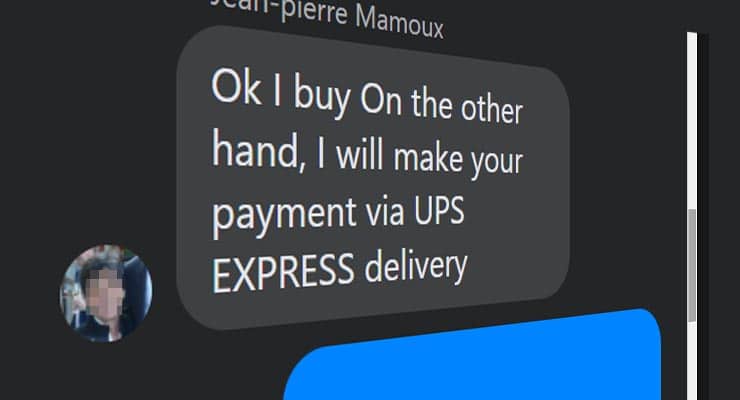 Instead of the more frequently used payment methods, such as PayPal or doorstep cash, the buyer instead says they’ll send the seller the payment in cash but using a courier service such as UPS. Take the message below that was sent by a scammer only recently.